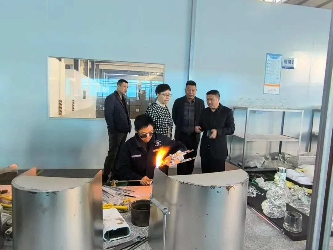 Guolian Holdings' Boduoduo was accompanied by Chairman Huang Yunbin to visit the exhibition hall and factory of Sichuan Guanyu Glass Industry Co., Ltd. for a visit and exchange.