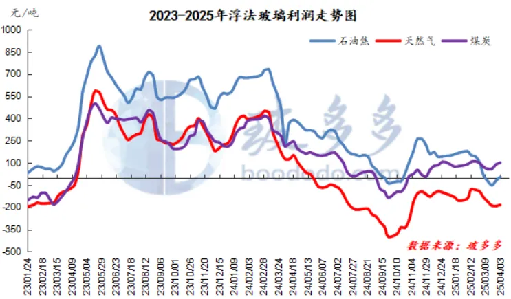 As of April 3 this week, the average weekly profit of float glass fueled by petroleum coke was 4.72 yuan/ton, an increase of 24.97 yuan/ton from the previous month; the average weekly profit of float glass fueled by natural gas was -183.78 yuan/ton, an increase of 7.72 yuan/ton from the previous month; the average weekly profit of float glass fueled by coal-to-gas was 101.37 yuan/ton, an increase of 12.87 yuan/ton from the previous month. Glass profits have rebounded during the week, downstream demand for goods has recovered slightly, and profits have been restored.