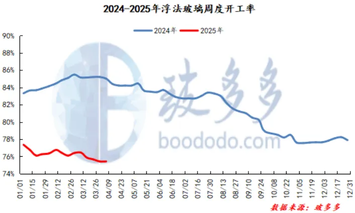 This week, the float glass weekly start-up rate was 75.42%, a decrease of 0.24% month-on-month. During the week, some float glass production lines were released, and the start-up rate dropped slightly compared with last week.